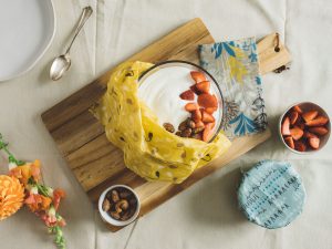 While the cupboards are empty, clean and disinfect them using soft cloths and natural solutions that are clean enough to eat – after all, this is the kitchen. We use liquid castile soap and water for most surfaces, and a simple one-to-one vinegar and water solution for glass. To organize, invest in sustainable storage solutions like beeswax food wraps and whenever possible, reuse that “Nancysware!”
